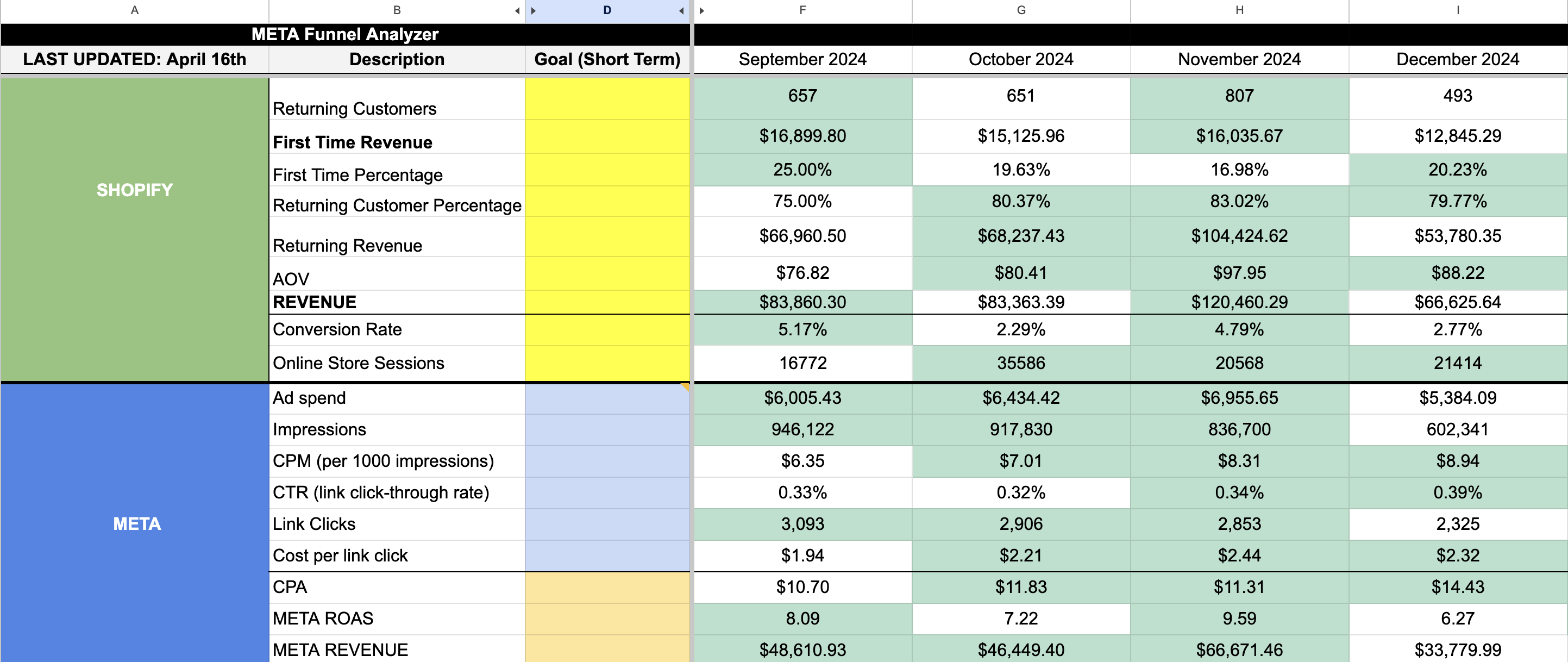 If the goal is to get conversion rate from 2% to 4%, then we can see that November and September were both above the targets, and we could see what plays we could replicate there. An aggressive acquisition offer or flash sale, a limited time offer, a CRO audit or sprint, could be the right next steps in that situation.